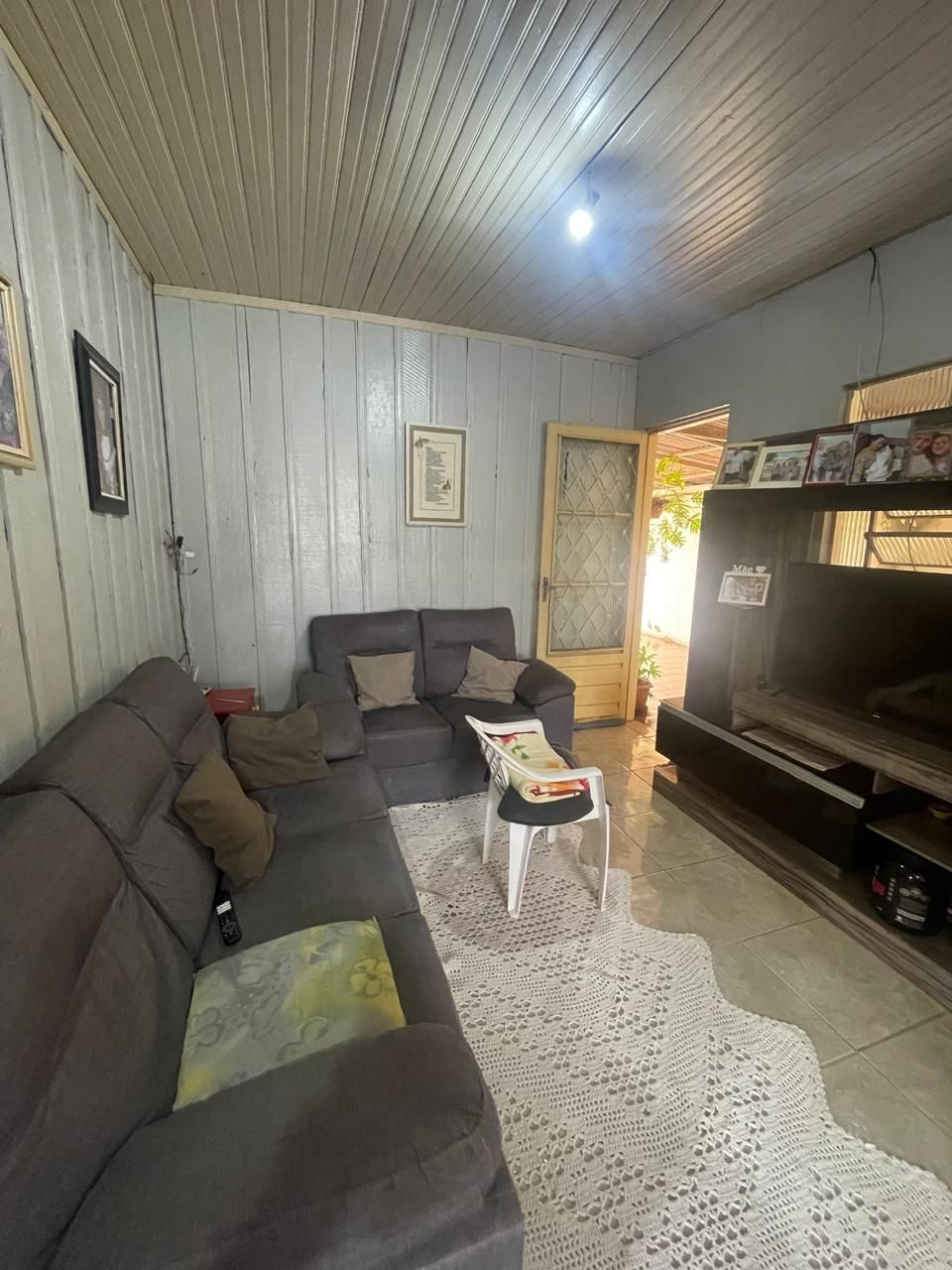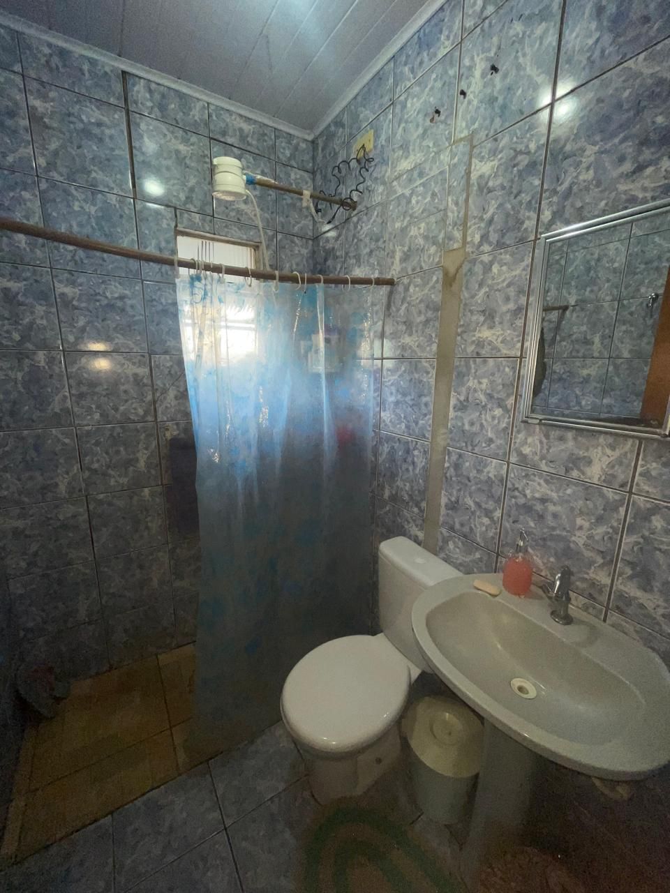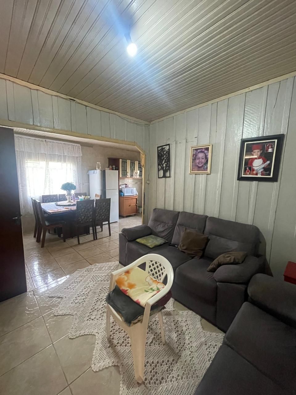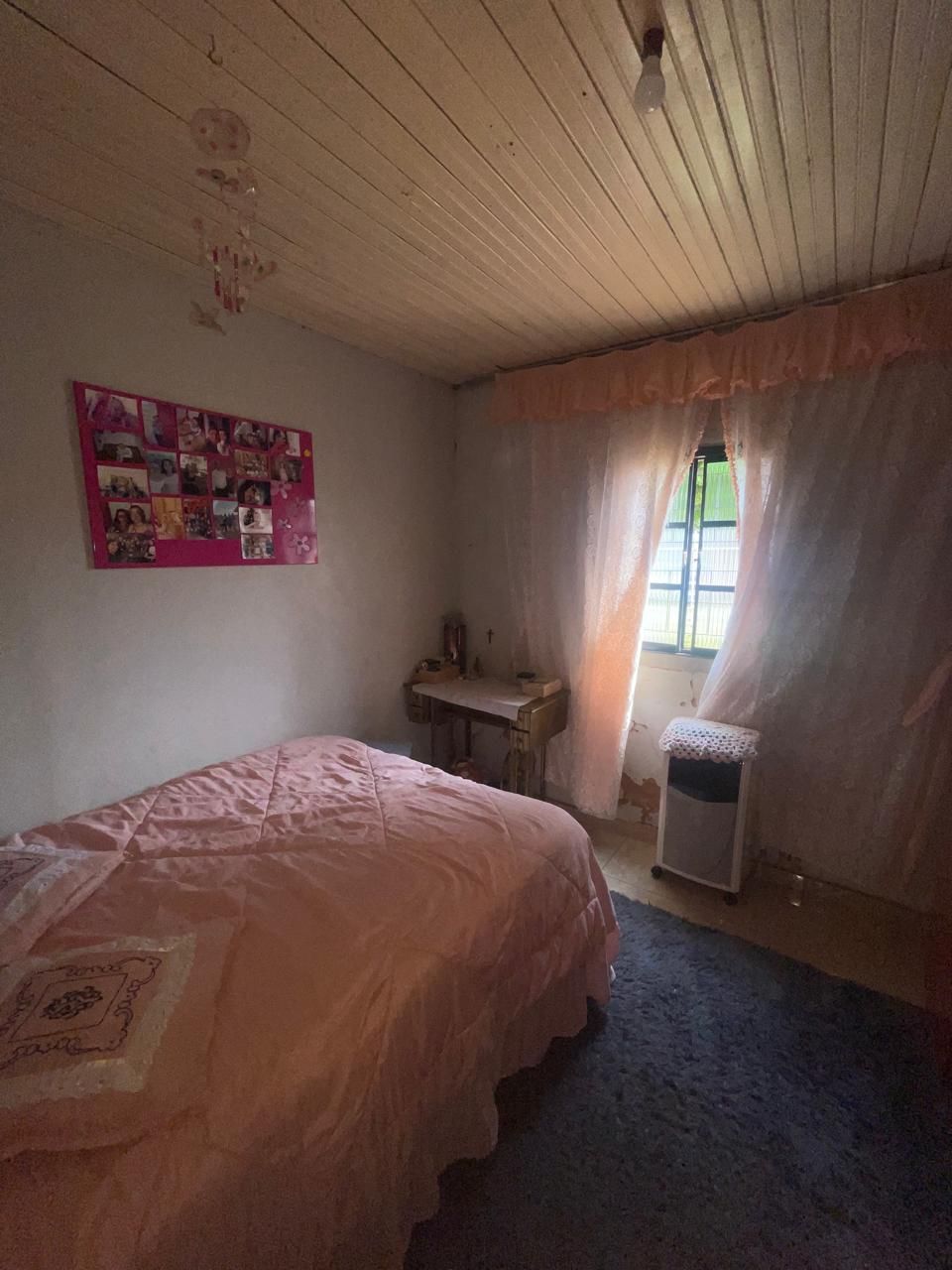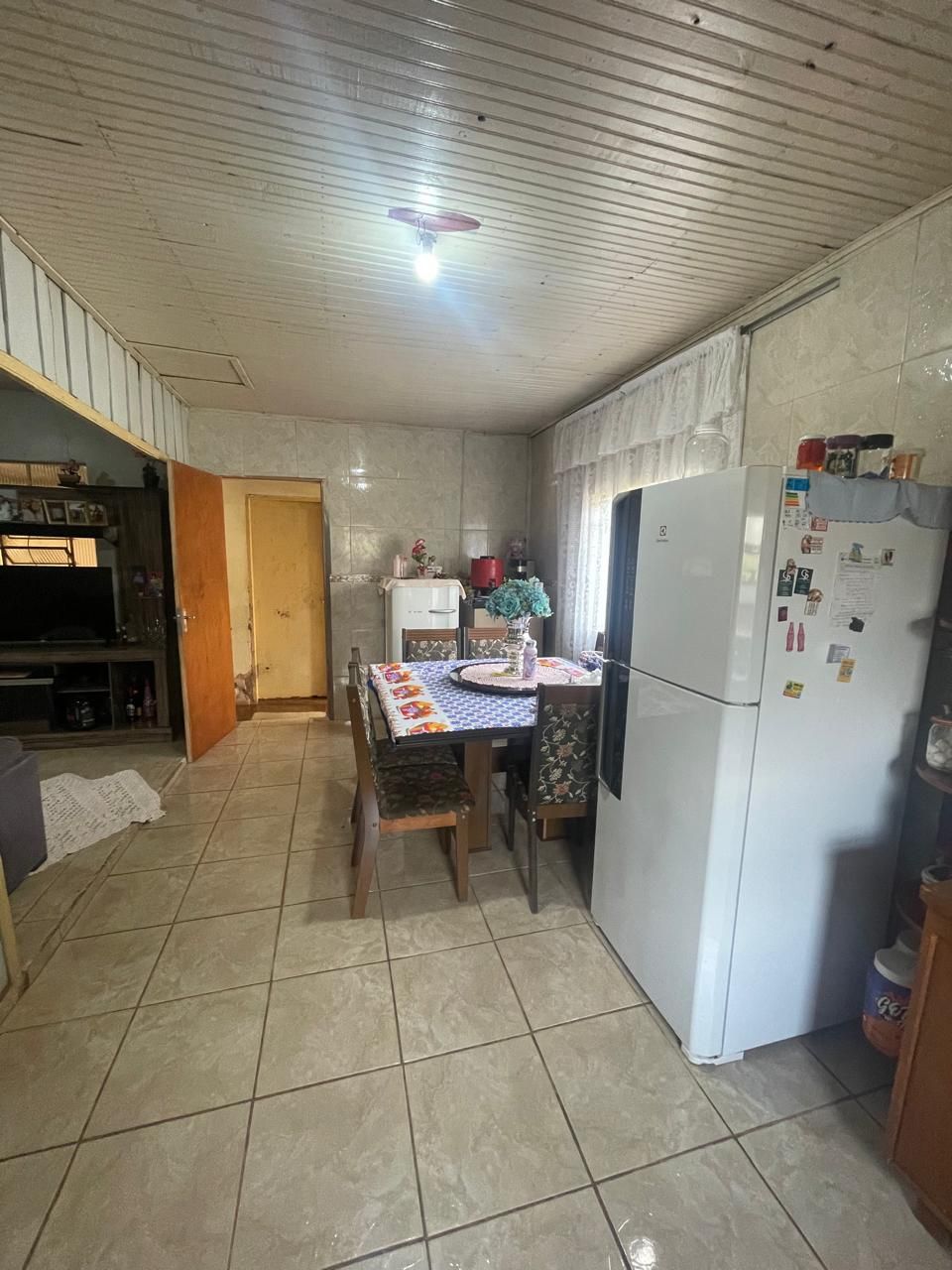 Residência mista (repartições internas de madeira), coberta por telhas e forração em madeira, contendo 3 quartos, sala cozinha, banheiro e garagem.