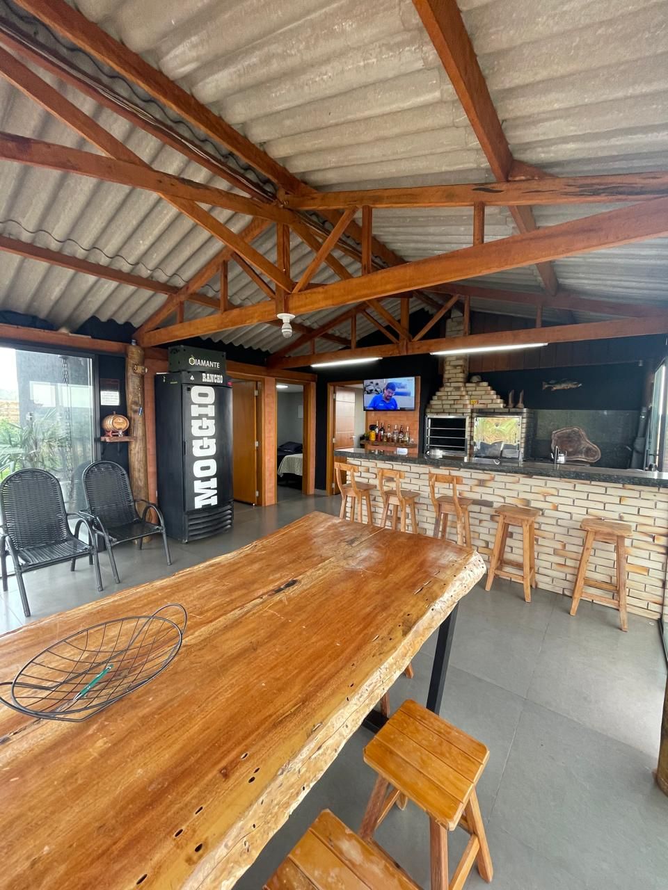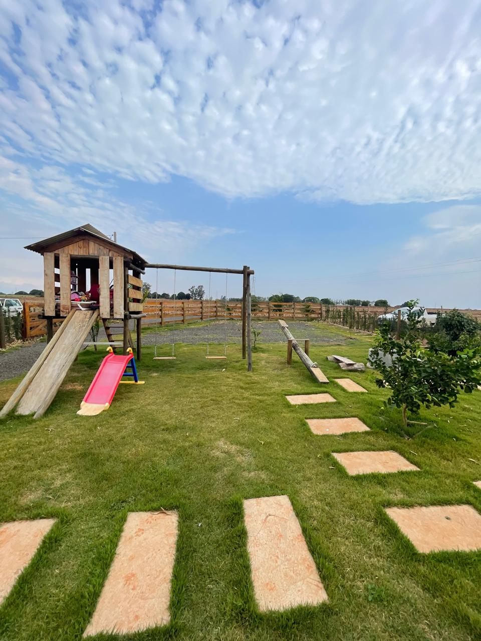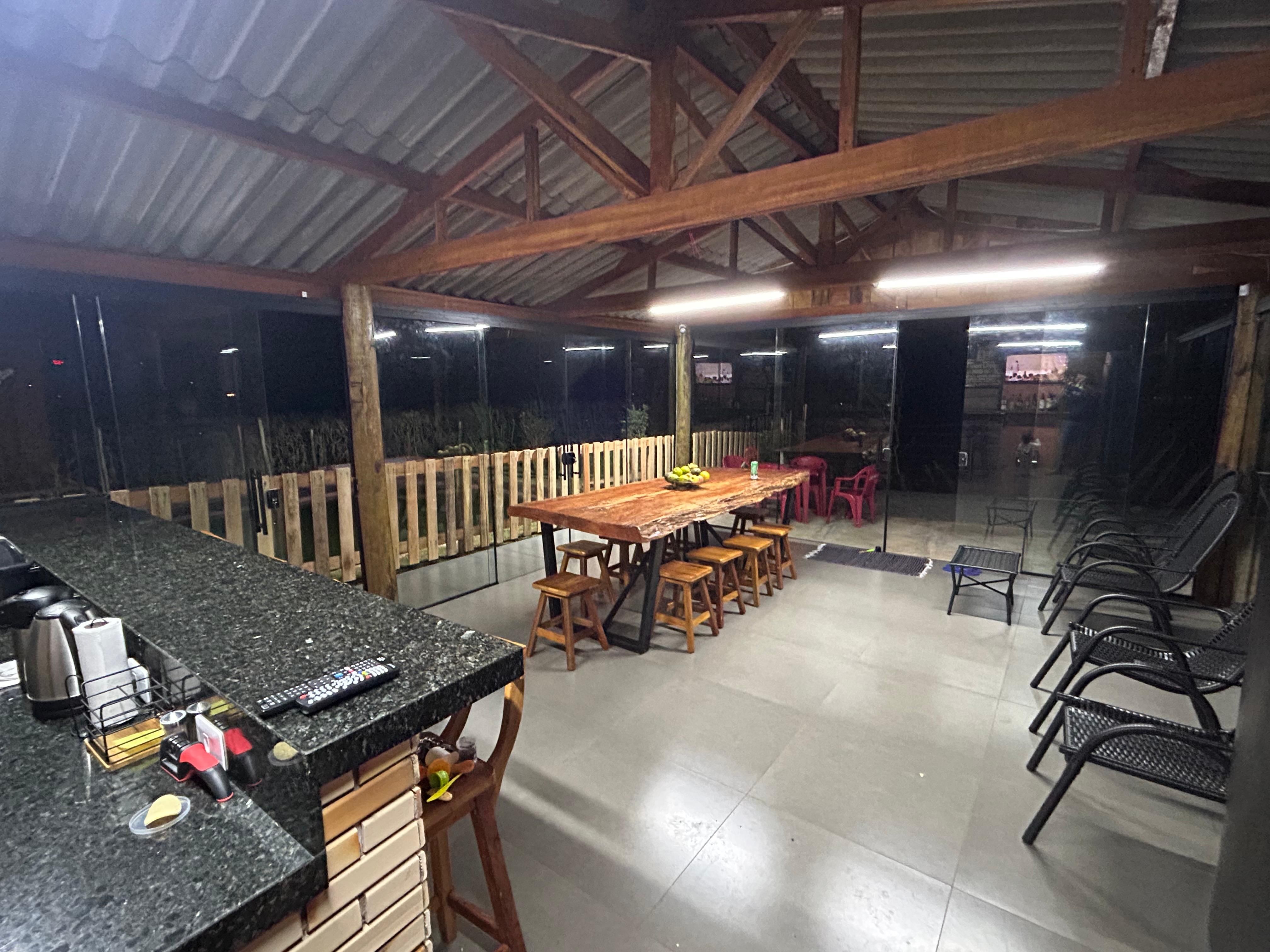 Na área externa contem pergolado na borda da represa, parque para crianças com casa suspensa, escorregador, balanço e gangorra.