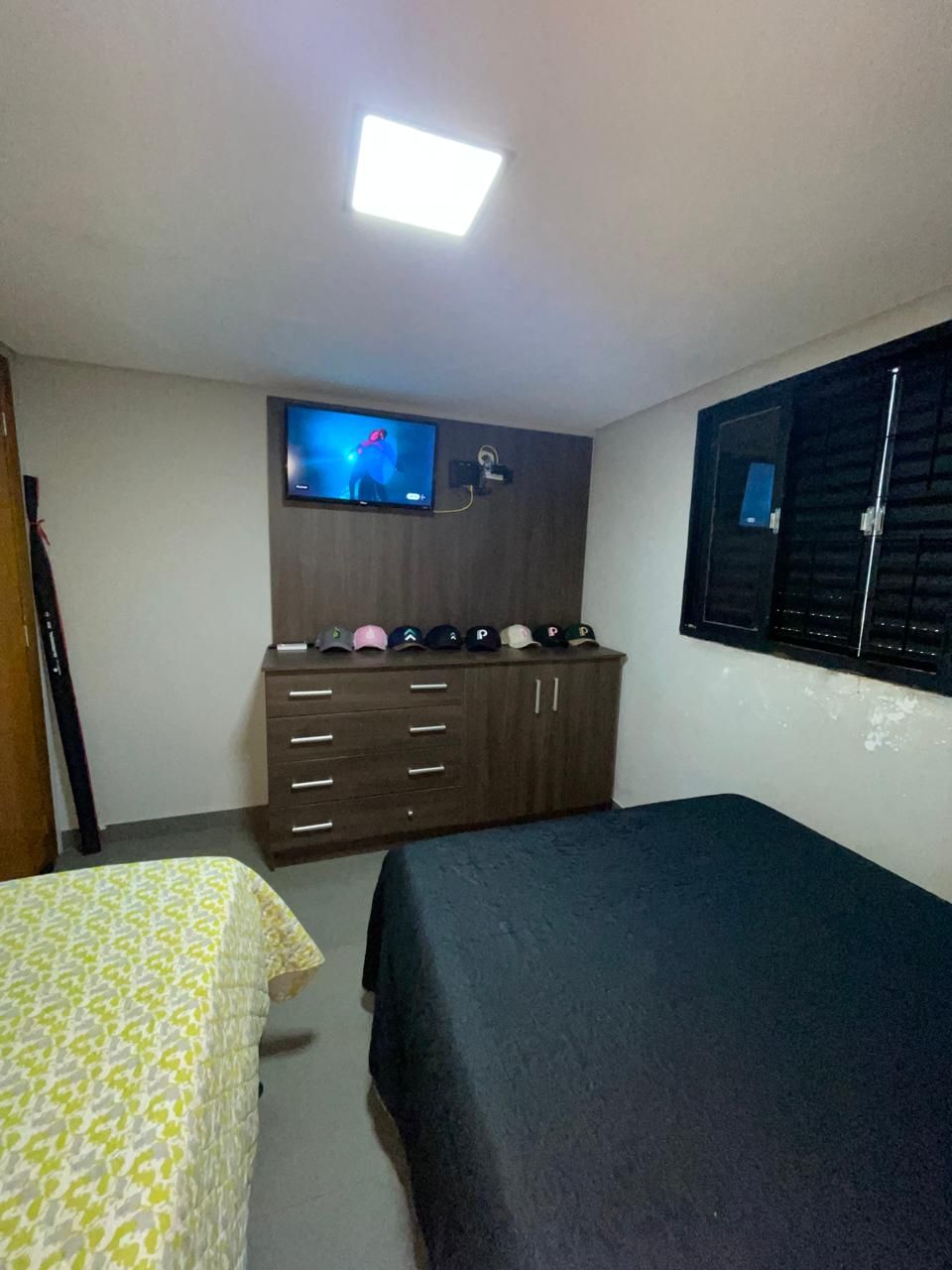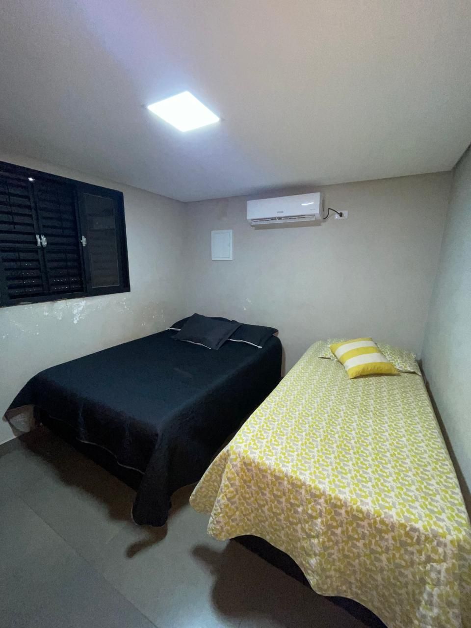 Contem 02 quartos com móveis planejados e camas de casal e solteiro, sendo um com ar condicionado e tv.