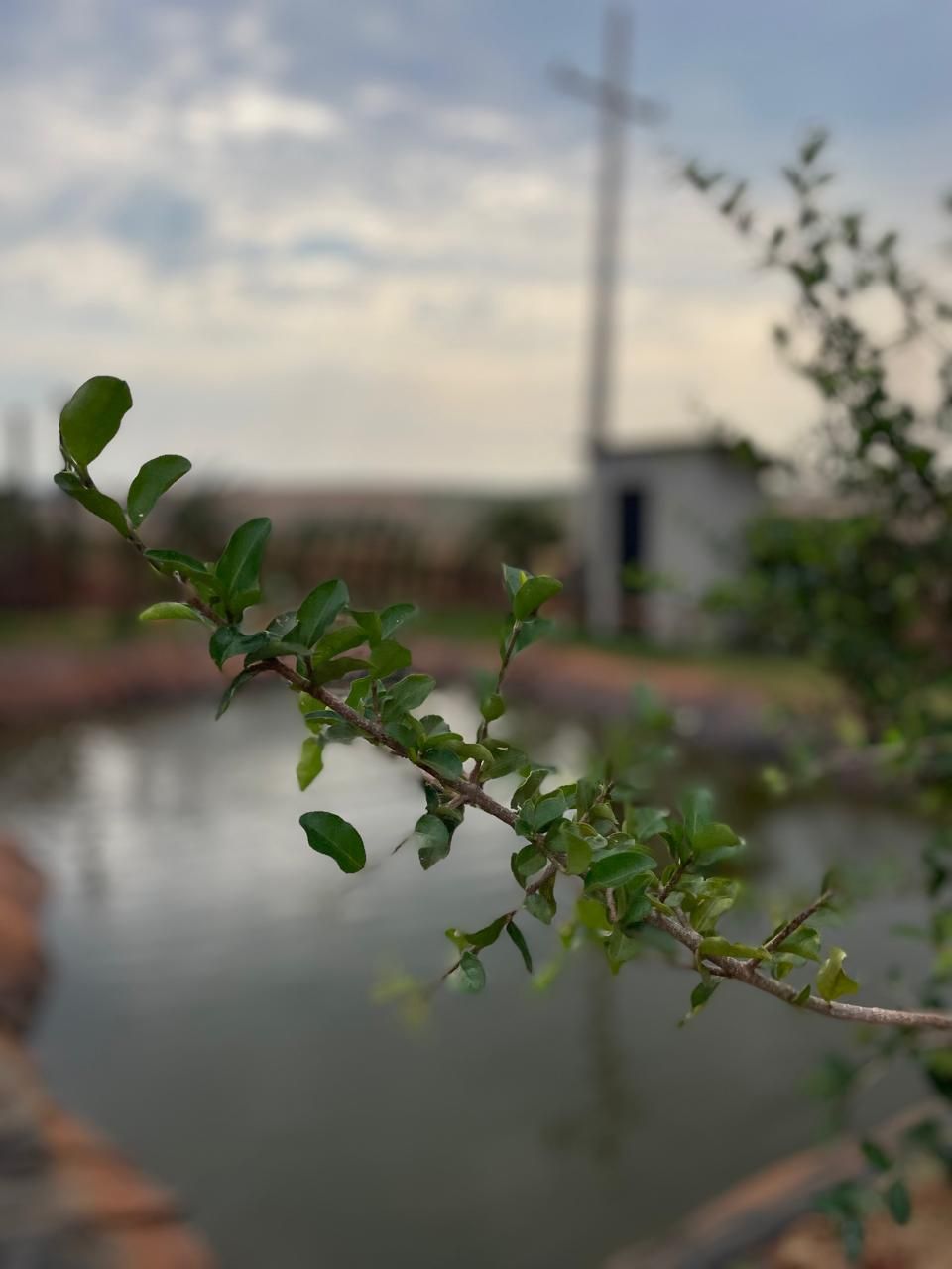 A chácara é totalmente cercada por arame e cerca viva de Podocarpos, planta especifica para esse fim.