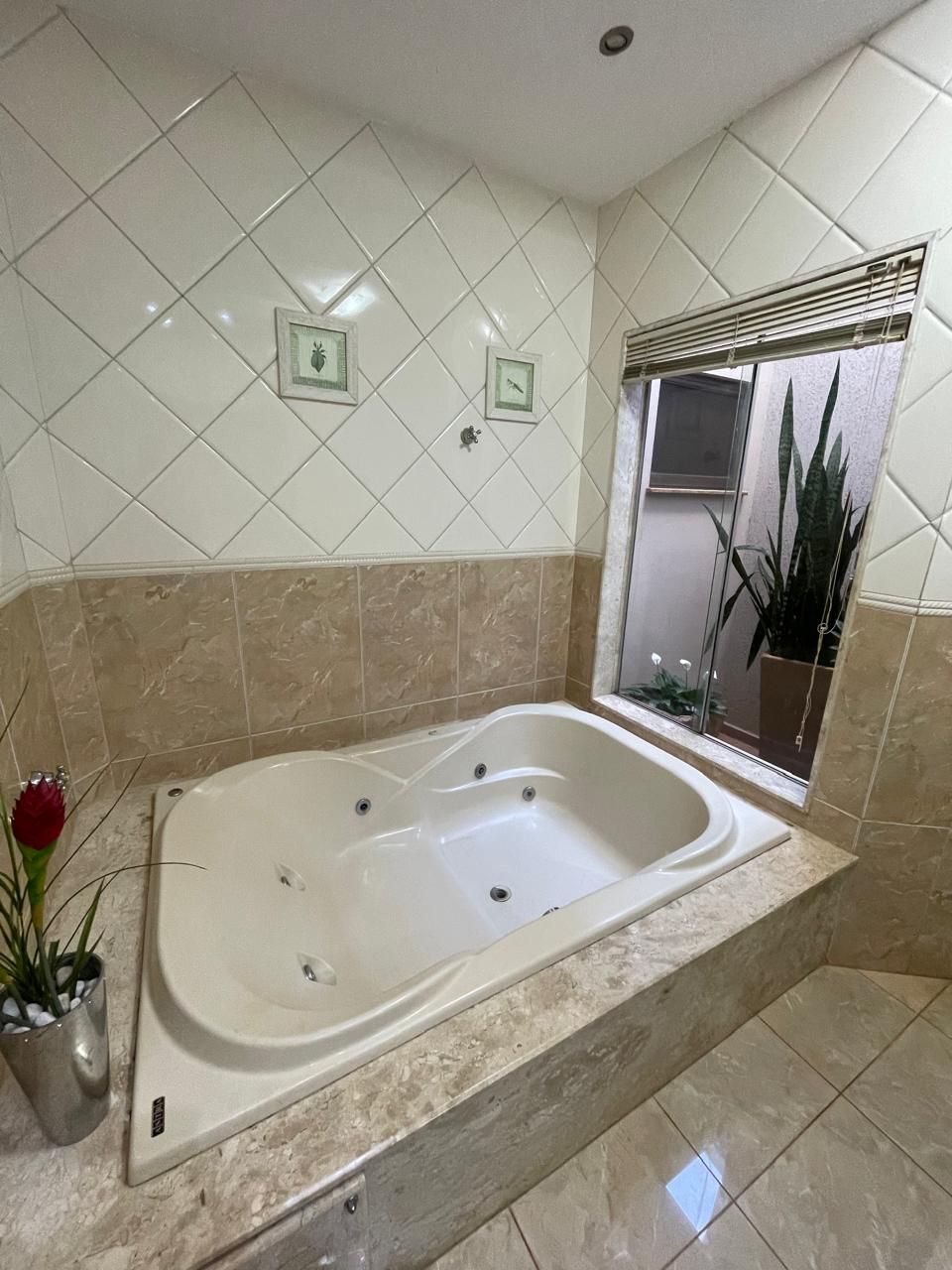 Área gourmet com pia de granito , armários, churrasqueira, piscina; cozinha externa com armários; banheiro com aquecedor solar,; lavanderia completa, sistema de alarme.